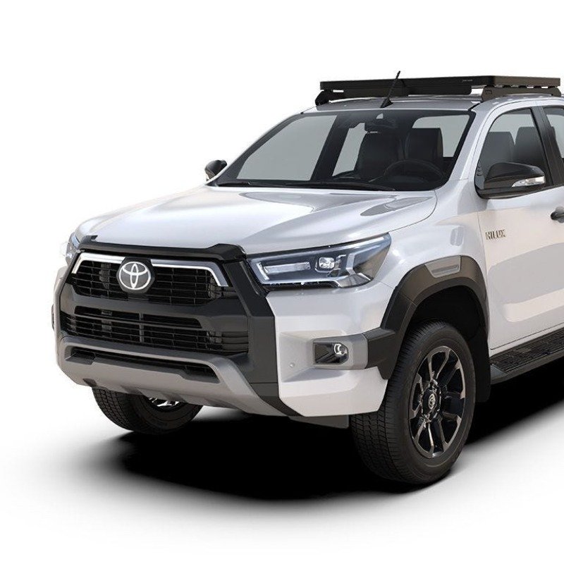 Front Runner Slimline II Roof Rack Kit pre Toyota Hilux Revo Extended Cab (2016–súčasnosť) v nízkoprofilovej verzii predstavuje jedno z najlepších riešení pre nosnosť a modularitu na streche pick-upu. Tento profesionálny strešný nosič je navrhnutý priamo pre Hilux, takže presne kopíruje líniu strechy a poskytuje čistý, nízky a stabilný základ pre expedičnú aj pracovnú výbavu.